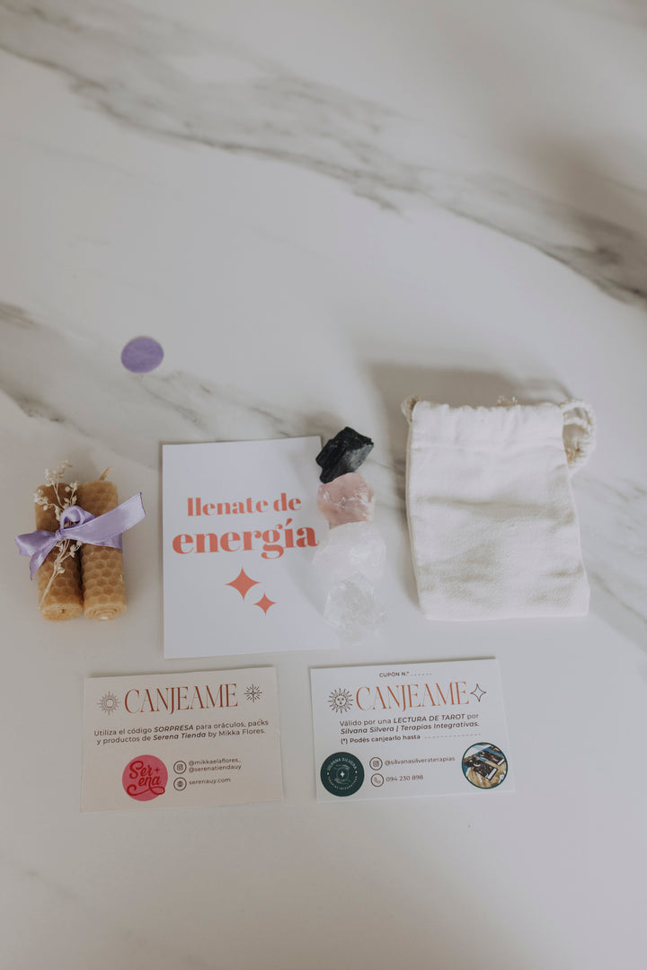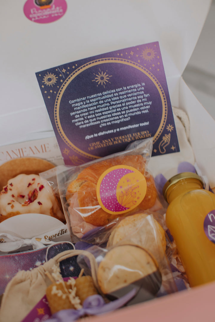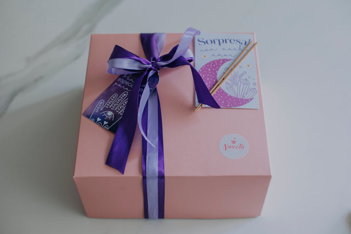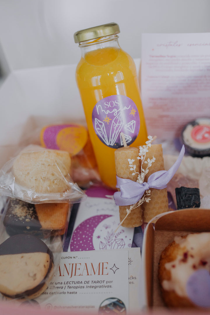 Nuestra box mistica combina lo mejor de los 2 mundos: piedras energeticas, inciensos, velitas de miel y toda la espiritualidad acompañada por nuestras delicias para sorprender a la brujita del grupo o para regalarte un momento para un lindo ritual personal.
